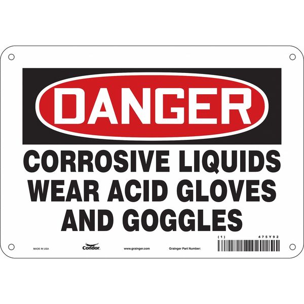 Safety Sign, 7 in Height, 10 in Width, Aluminum, Vertical Rectangle, English, 475Y92SKU G5776817Categories SafetyDescription Safety Sign, Vertical Rectangle, Number of Printed Sides 1, English, Sign Format Traditional OSHA, Sign Legend Corrosive Liquids Wear Acid Gloves And Goggles, Sign Legend Background Color White, Sign Legend Style TextgraingerSKU: 475Y92, mscSKU: , zoro_no: G5776817, mongo_id: 65bbe8d122d7a989a9918e5c