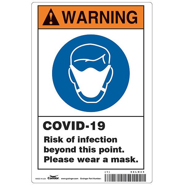 SKU G7660932Categories SafetyDescription Covid 19 Sign 7X10, Risk Mask, High Impa, Sign Subject Matter Coronavirus Prevention, Height 7 in, Width 10 in, Sign Material Polystyrene, Sign Mounting Style With Mounting Holes, Header Warning, Legend COVID-19 Risk Of Infection Beyond This Point. Please Wear A Mask., Printed Language EnglishgraingerSKU: 56LN25, mscSKU: , zoro_no: G7660932, mongo_id: 65bbe8d122d7a989a9918d9b