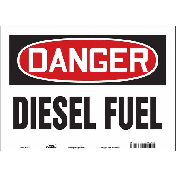 SKU G5511051Categories SafetyDescription Safety Sign, Horizontal Rectangle, Number of Printed Sides 1, English, Sign Format Traditional OSHA, Sign Legend Diesel Fuel, Sign Legend Background Color White, Sign Legend Style Text Safety Sign, 10 in Height, 14 in Width, Vinyl, Horizontal Rectangle, English, 470U03