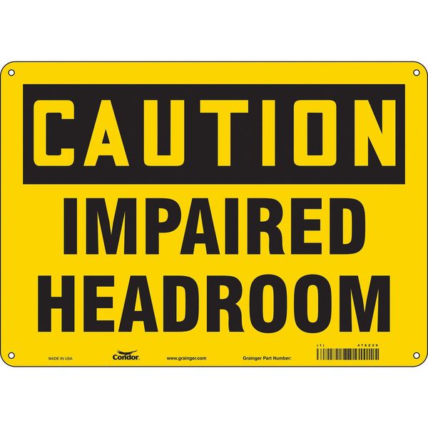 SKU G5792661Categories SafetyDescription Safety Sign, Horizontal Rectangle, Number of Printed Sides 1, English, Sign Format Traditional OSHA, Sign Legend Impaired Headroom, Sign Legend Background Color Yellow, Sign Legend Style Text Safety Sign, 10 in Height, 14 in Width, Aluminum, Horizontal Rectangle, English, 478Z29