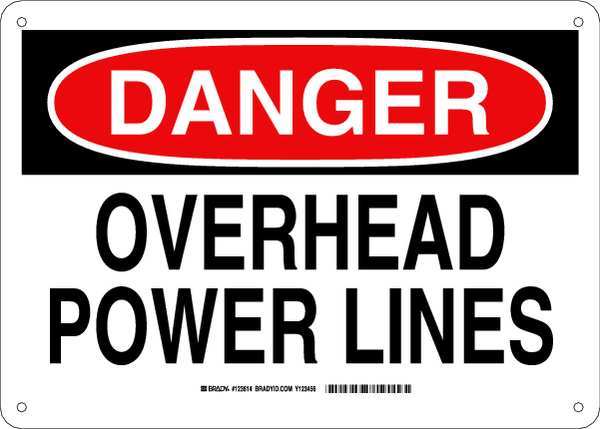 Danger Sign, 10X14, Legend: Overhead Power LinesSKU G8640447Categories SafetyDescription Danger Sign, Sign Subject Matter Electrical Hazard, Height 10 in, Width 14 in, Sign Material Aluminum, Sign Mounting Style With Mounting Holes, Header Danger, Legend Overhead Power Lines, Printed Language English, Sign Shape RectanglegraingerSKU: , mscSKU: , zoro_no: G8640447, mongo_id: 65bbe8d122d7a989a9918c90