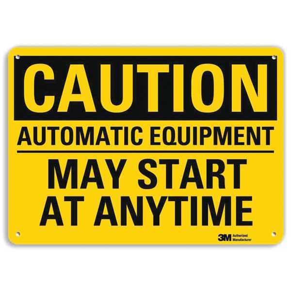 Safety Sign, Eqpmnt Start Anytime, 7in.H, U4-1067-RA_10X7