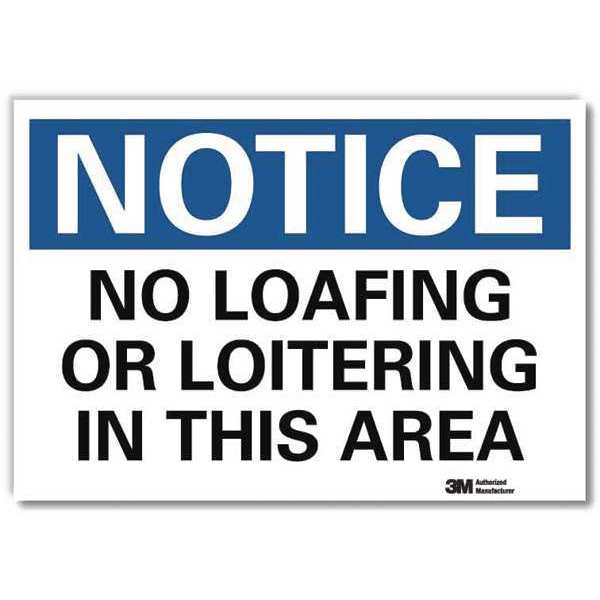 SKU G2759900Categories SafetyDescription Notice Sign, Vertical Rectangle, Number of Printed Sides 1, English, Sign Format Traditional OSHA, Sign Legend No Loafing Or Loitering In This Area, Sign Legend Background Color White, Sign Legend Style TextgraingerSKU: 34JT41, mscSKU: , zoro_no: G2759900, mongo_id: 65bbe96322d7a989a9952163