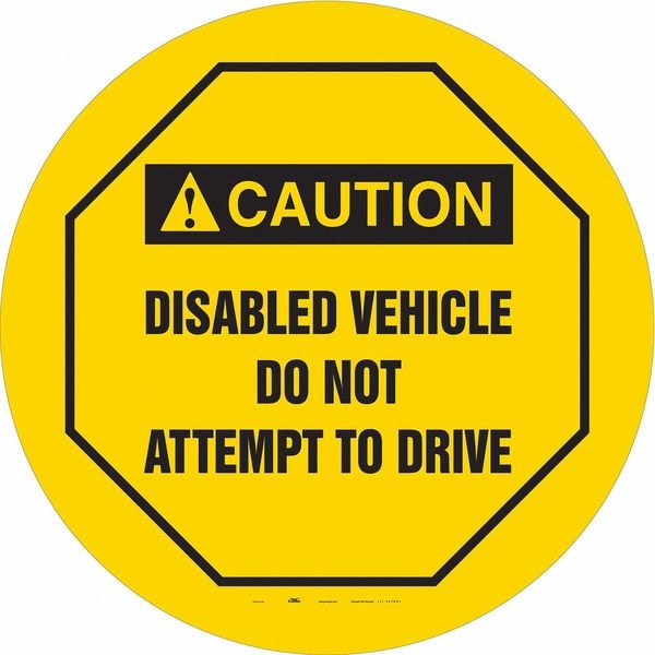 SKU G6537723Categories SafetyDescription Traffic Sign, Cover Color Yellow, Cover Material Vinyl, Hole Diameter 3/8 in, Lockable Yes, Outside Diameter 24 in, Header Caution, Legend Disabled Vehicle Do Not Attempt to Drive, Maximum Number of Padlocks 1, Header Background Color Black, Standards ANSI Z535, OSHA 29 CFR 1910.145, Thickness 0.026 in Traffic Sign, 24 in H, 24 in W, Vinyl, Circle, English, 487D51