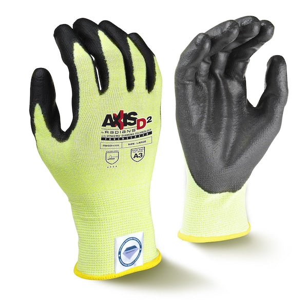 Hi-Vis Cut Resistant Coated Gloves, A3 Cut Level, Polyurethane, XL, 1 PRSKU G3854367Categories SafetyDescription Hi-Viz Yellow HPPE,Blk PU Touch,1,PR, 1 Pair$15.61 / eachWeb price -