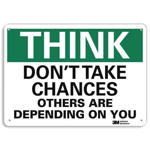 SKU G2734369Categories SafetyDescription Safety Sign, Vertical Rectangle, Number of Printed Sides 1, English, Sign Format Traditional OSHA, Sign Legend Don't Take Chances Others Are Depending On You, Sign Legend Background Color White, Sign Legend Style TextgraingerSKU: 34RM87, mscSKU: , zoro_no: G2734369, mongo_id: 65bbe6db3aaddbd5a905a21b
