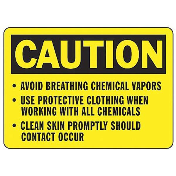 SKU G1706785Categories SafetyDescription Caution Sign, Sign Subject Matter Personal Protection, Height 7 in, Width 10 in, Sign Material Plastic, Header Caution, Legend Avoid Breathing Chemical Vapors -Use Protective Clothing When Working With All Chemicals -Clean Skin Promptly Should Contact Occur, Printed Language English, Sign Shape Rectangle$8.31 / eachWeb priceCaution Sign, 7 in H, 10 in W, Plastic, Rectangle, English, MCHL636VPSKU G1706785Categories SafetyDescription Caution Sign, Sign Subject Matter Personal Protection, Height 7 in, Width 10 in, Sign Material Plastic, Header Caution, Legend Avoid Breathing Chemical Vapors -Use Protective Clothing When Working With All Chemicals -Clean Skin Promptly Should Contact Occur, Printed Language English, Sign Shape Rectangle$8.31 / eachWeb price -