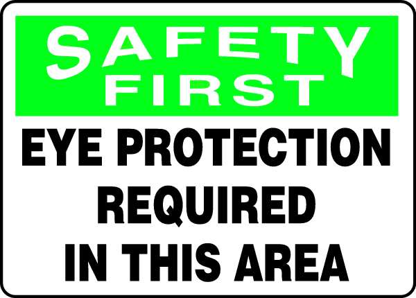 SKU G1693284Categories SafetyDescription Safety First Sign, Sign Subject Matter Personal Protection, Height 10 in, Width 14 in, Sign Material Plastic, Sign Mounting Style With Mounting Holes, Header Safety First, Legend Eye Protection Required In This Area, Printed Language English, Sign Shape Rectangle$13.44 / eachWeb priceCaution Sign, 10X14", BK and Grn/Wht, Header Legend Color: WhiteSKU G1693284Categories SafetyDescription Safety First Sign, Sign Subject Matter Personal Protection, Height 10 in, Width 14 in, Sign Material Plastic, Sign Mounting Style With Mounting Holes, Header Safety First, Legend Eye Protection Required In This Area, Printed Language English, Sign Shape Rectangle$13.44 / eachWeb price -