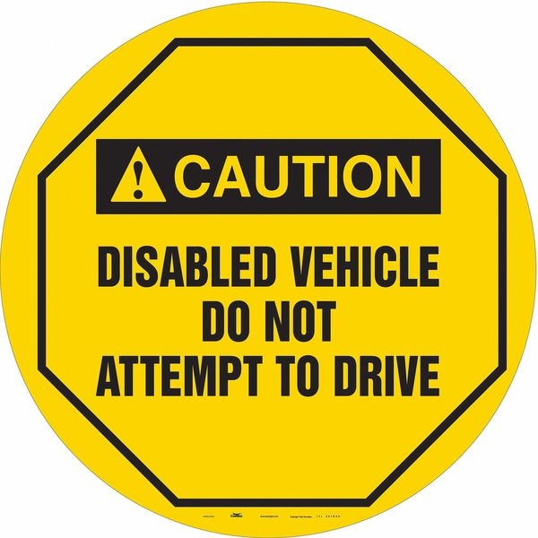 SKU G6572242Categories SafetyDescription Traffic Sign, Cover Color Yellow, Cover Material Vinyl, Hole Diameter 3/8 in, Lockable Yes, Outside Diameter 20 in, Header Caution, Legend Disabled Vehicle Do Not Attempt to Drive, Maximum Number of Padlocks 1, Header Background Color Black, Standards ANSI Z535, OSHA 29 CFR 1910.145, Thickness 0.026 ingraingerSKU: 487D56, mscSKU: , zoro_no: G6572242, mongo_id: 65bbe6c63aaddbd5a9051871