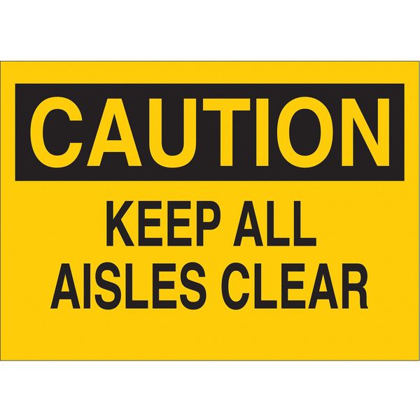 Caution Sign, 10X14", BK/YEL, ENG, Text, Legend: Keep All Aisles Clear, 43333