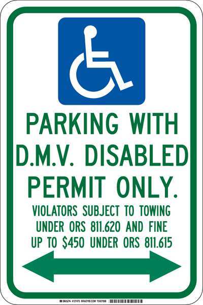 Handicap Parking Sign, 18"H, 12"W, Alum, 127473