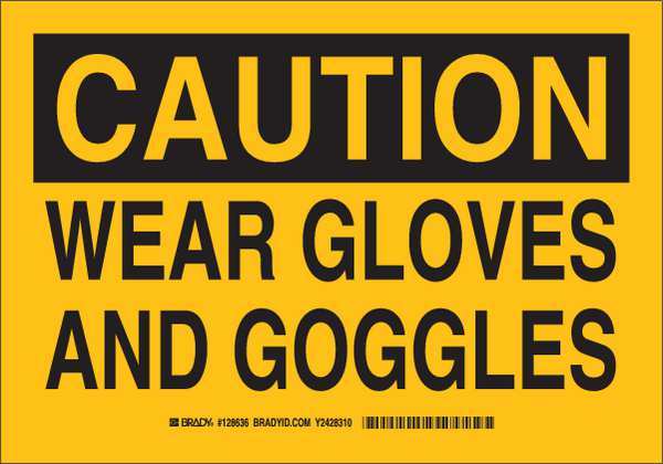 $11.94 / eachWeb priceCaution Sign, 7X10", Black/Yellow, 128635SKU G8442478Categories SafetyDescription Caution Sign, Sign Subject Matter Personal Protection, Height 7 in, Width 10 in, Sign Material Plastic, Header Caution, Legend Wear Gloves and Goggles, Printed Language English, Sign Shape RectanglegraingerSKU: , mscSKU: , zoro_no: G8442478, mongo_id: 65bbe98822d7a989a9960849
