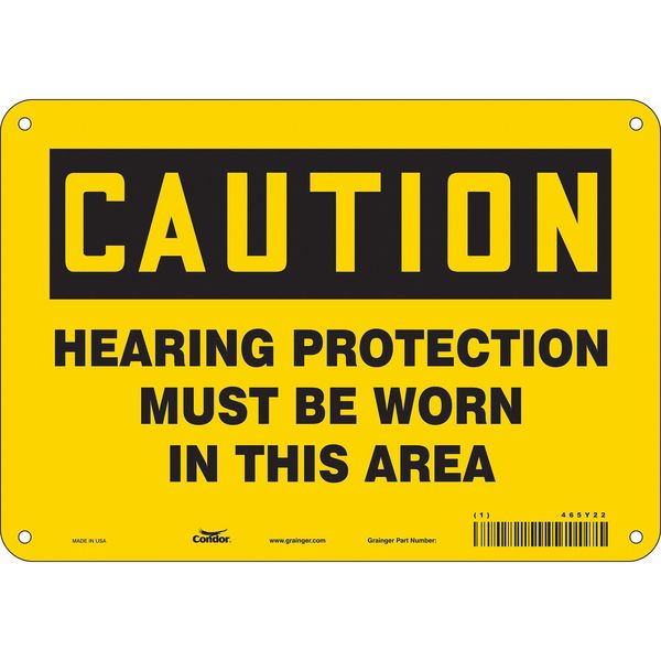 $10.36 / eachWeb priceSafety Sign, 7 in Height, 10 in Width, Polyethylene, Vertical Rectangle, English, 465Y22SKU G5101719Categories SafetyDescription Safety Sign, Vertical Rectangle, Number of Printed Sides 1, English, Sign Format Traditional OSHA, Sign Legend Hearing Protection Must Be Worn In This Area, Sign Legend Background Color Yellow, Sign Legend Style TextgraingerSKU: 465Y22, mscSKU: , zoro_no: G5101719, mongo_id: 65bbe88a9a749db82279871d