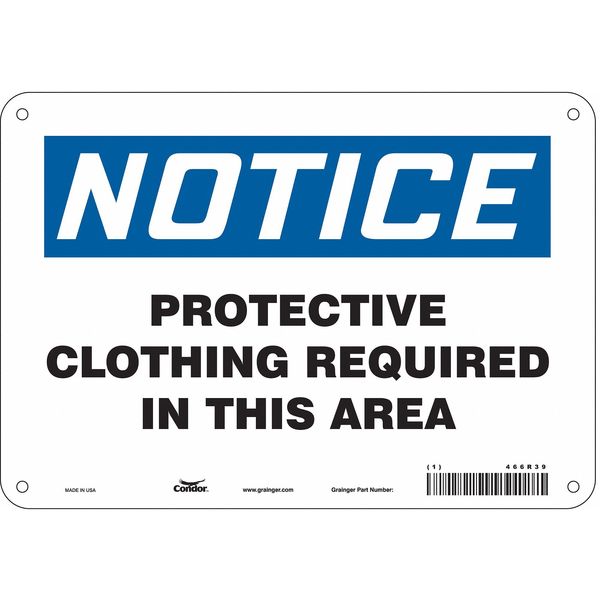 SKU G5612043Categories SafetyDescription Safety Sign, Vertical Rectangle, Number of Printed Sides 1, English, Sign Format Traditional OSHA, Sign Legend Protective Clothing Required In This Area, Sign Legend Background Color White, Sign Legend Style TextgraingerSKU: 466R39, mscSKU: , zoro_no: G5612043, mongo_id: 65bbe88a9a749db822798849