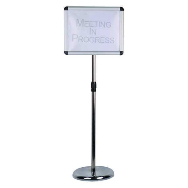 SKU G6842455Categories SafetyDescription Sign Holder, Mounting Style Pedestal, Size 7 in x 11 in, Overall Height 45 1/2 in, Material Metal, Color Satin Chrome, ADA Compliance NograingerSKU: , mscSKU: , zoro_no: G6842455, mongo_id: 65bbe87822d7a989a98fa382