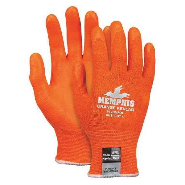 Hi-Vis Cut Resistant Coated Gloves, A4 Cut Level, Foam Nitrile, L, 1 PR