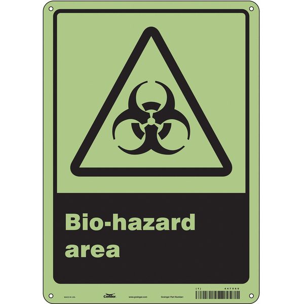 Biohazard Sign, 14 in H, 10 in W, Polyethylene, Vertical Rectangle, English, 447V60