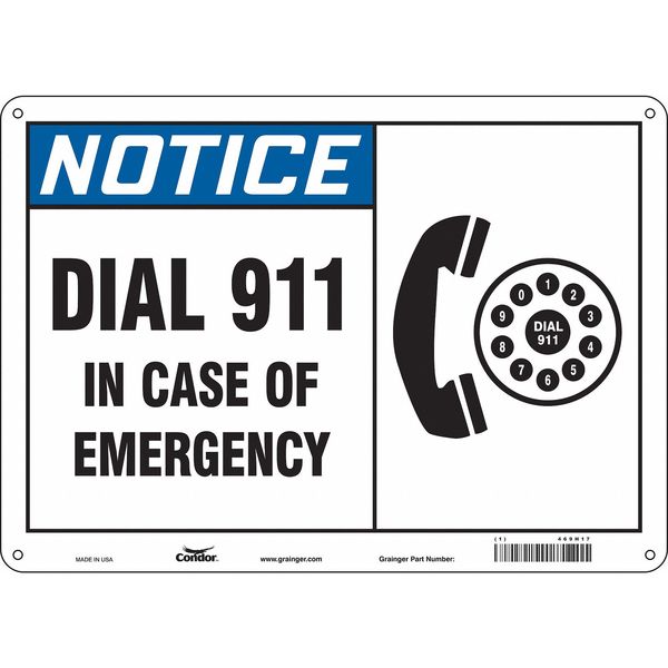 SKU G5615598Categories SafetyDescription SAFETY SIGN FIRE AND EMERGENCY, Horizontal Rectangle, Number of Printed Sides 1, English, Sign Format ANSI/OSHA Format, Sign Legend Dial 911 In Case Of Emergency, Sign Legend Background Color White, Sign Legend Style Symbol and TextgraingerSKU: 469H17, mscSKU: , zoro_no: G5615598, mongo_id: 65bbe88a9a749db822798761