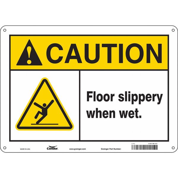 $25.19 / eachWeb priceSafety Sign, 10 in Height, 14 in Width, Aluminum, Horizontal Rectangle, English, 469N62SKU G5064950Categories SafetyDescription Safety Sign, Horizontal Rectangle, Number of Printed Sides 1, English, Sign Format ANSI/OSHA Format, Sign Legend Floor Slippery When Wet., Sign Legend Background Color White, Sign Legend Style Symbol and TextgraingerSKU: 469N62, mscSKU: , zoro_no: G5064950, mongo_id: 65bbe88a9a749db82279872b