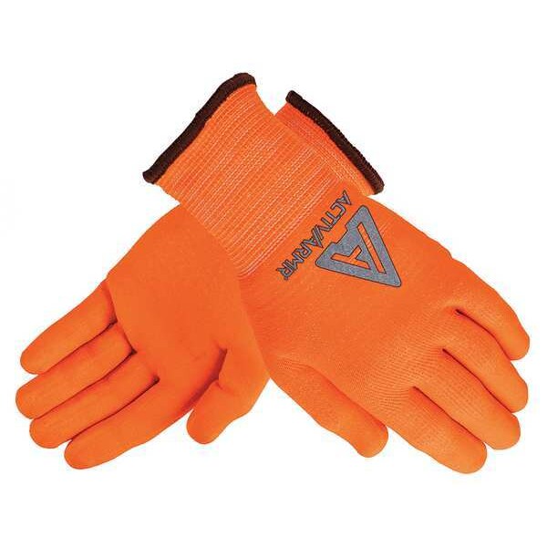 Hi-Vis Cut Resistant Coated Gloves, A2 Cut Level, Nitrile/Polyurethane, 10, 1 PR