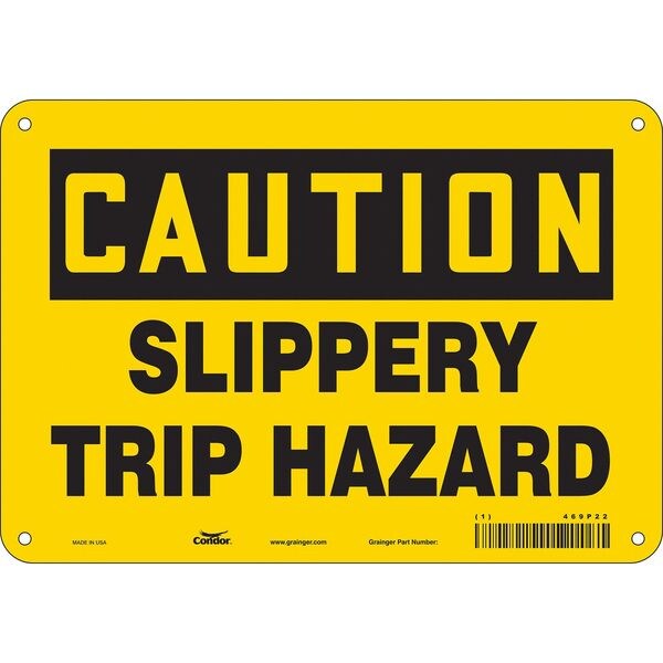 SKU G5587832Categories SafetyDescription Safety Sign, Vertical Rectangle, Number of Printed Sides 1, English, Sign Format Traditional OSHA, Sign Legend Slippery Trip Hazard, Sign Legend Background Color Yellow, Sign Legend Style TextgraingerSKU: 469P22, mscSKU: , zoro_no: G5587832, mongo_id: 65bbe8ab22d7a989a990aa4e
