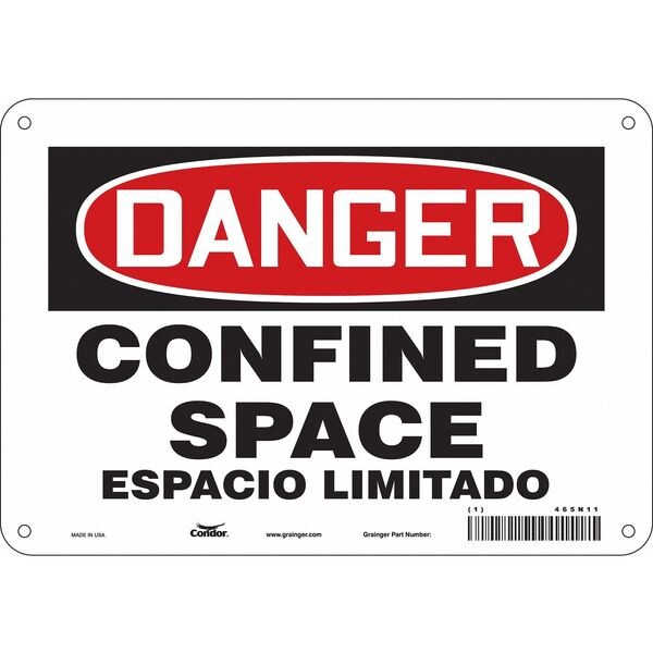 Safety Sign, 7" H, 10" W, Plastic, 465N11SKU G5077429Categories SafetyDescription Safety Sign, Vertical Rectangle, Number of Printed Sides 1, English, Spanish, Sign Format Traditional OSHA, Sign Legend Confined Space/ Espacio Limitado, Sign Legend Background Color White, Sign Legend Style TextgraingerSKU: 465N11, mscSKU: , zoro_no: G5077429, mongo_id: 65bbe8ab22d7a989a990a9d4