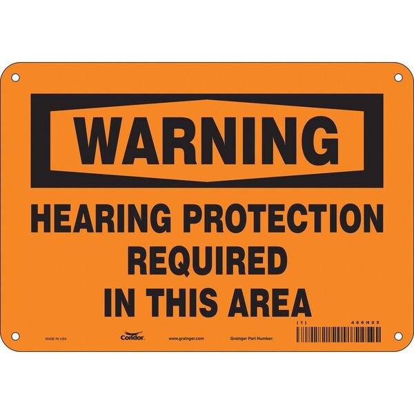 SKU G5565852Categories SafetyDescription Safety Sign, Vertical Rectangle, Number of Printed Sides 1, English, Sign Format Traditional OSHA, Sign Legend Hearing Protection Required In This Area, Sign Legend Background Color Orange, Sign Legend Style TextgraingerSKU: 466H05, mscSKU: , zoro_no: G5565852, mongo_id: 65bbe8ab22d7a989a990aa86