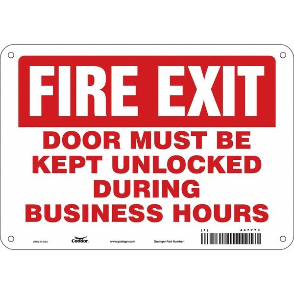 SKU G5631987Categories SafetyDescription Safety Sign Emergency Exit, Vertical Rectangle, Number of Printed Sides 1, English, Sign Format Other Format, Sign Legend Door Must Be Kept Unlocked During Business Hours, Sign Legend Background Color Red, White, Sign Legend Style TextgraingerSKU: 467P78, mscSKU: , zoro_no: G5631987, mongo_id: 65bbe8ab22d7a989a990a9c4