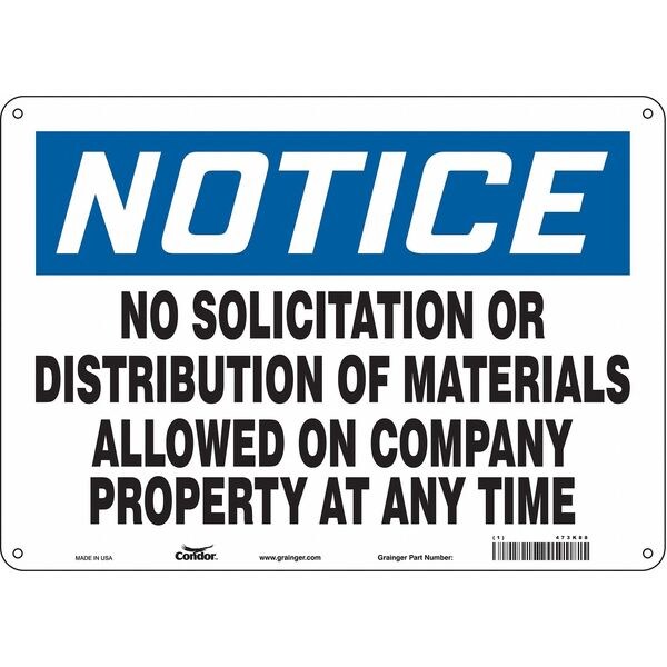 Safety Sign, 10 in Height, 14 in Width, Aluminum, Horizontal Rectangle, English, 473K88SKU G5558012Categories SafetyDescription Safety Sign, Horizontal Rectangle, Number of Printed Sides 1, English, Sign Format Traditional OSHA, Sign Legend No Solicitation Or Distribution Of Materials Allowed On Company Property At Any Time, Sign Legend Background Color White, Sign Legend Style TextgraingerSKU: 473K88, mscSKU: , zoro_no: G5558012, mongo_id: 65bbe8ab22d7a989a990aa74