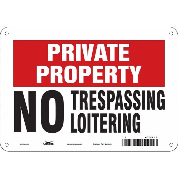 Safety Sign, 7 in Height, 10 in Width, Aluminum, Vertical Rectangle, English, 473M11SKU G5647052Categories SafetyDescription Safety Sign, Vertical Rectangle, Number of Printed Sides 1, English, Sign Format Other Format, Sign Legend No Trespassing No Loitering, Sign Legend Background Color Red, White, Sign Legend Style TextgraingerSKU: 473M11, mscSKU: , zoro_no: G5647052, mongo_id: 65bbe8ab22d7a989a990a9c2