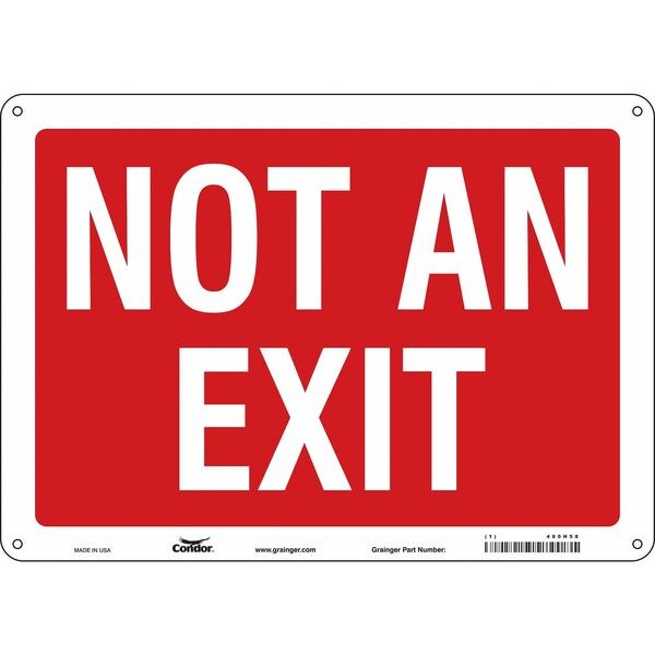Safety Sign, 10 in x 14 in, AluminumSKU G5777797Categories SafetyDescription Safety Sign, Horizontal Rectangle, Number of Printed Sides 1, English, Sign Legend Not An Exit, Sign Legend Background Color Red, White, Sign Legend Style TextgraingerSKU: 480H58, mscSKU: , zoro_no: G5777797, mongo_id: 65bbe8ab22d7a989a990aa1b