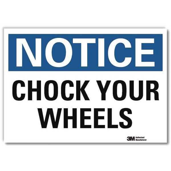 Notice Sign, 10 in H, 14 in W, Reflective Sheeting, Horizontal Rectangle, English, U5-1096-RD_14X10SKU G2764441Categories SafetyDescription Notice Sign, Horizontal Rectangle, Number of Printed Sides 1, English, Sign Format Traditional OSHA, Sign Legend Chock Your Wheels, Sign Legend Background Color White, Sign Legend Style TextgraingerSKU: 34JJ50, mscSKU: , zoro_no: G2764441, mongo_id: 65bbe8ab22d7a989a990a6ec