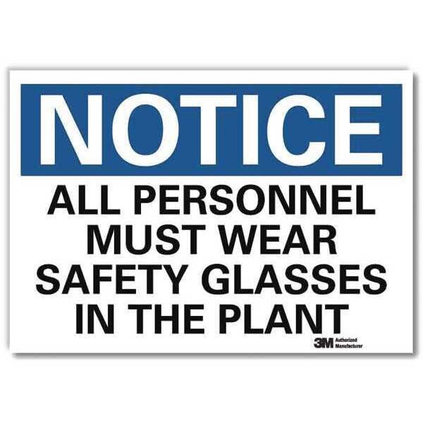 SKU G2765126Categories SafetyDescription Notice Sign, Horizontal Rectangle, Number of Printed Sides 1, English, Sign Format Traditional OSHA, Sign Legend All Personnel Must Wear Safety Glasses In The Plant, Sign Legend Background Color White, Sign Legend Style TextgraingerSKU: 34JH54, mscSKU: , zoro_no: G2765126, mongo_id: 65bbe8ab22d7a989a990a5ae