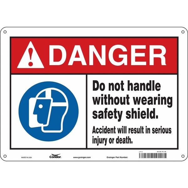 Safety Sign, 10 in Height, 14 in Width, Aluminum, Horizontal Rectangle, English, 466Y30SKU G5859633Categories SafetyDescription Safety Sign, Horizontal Rectangle, Number of Printed Sides 1, English, Sign Format ANSI/OSHA Format, Sign Legend Do Not Handle Without Wearing Safety Shield. Accident Will Result In Serious Injury Or Death, Sign Legend Background Color White, Sign Legend Style Symbol and TextgraingerSKU: 466Y30, mscSKU: , zoro_no: G5859633, mongo_id: 65bbe6983aaddbd5a903da93