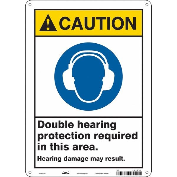 Safety Sign, 14 in Height, 10 in Width, Aluminum, Vertical Rectangle, English, 466C43SKU G5164131Categories SafetyDescription Safety Sign, Vertical Rectangle, Number of Printed Sides 1, English, Sign Format ANSI/OSHA Format, Sign Legend Double Hearing Protection Required In This Area. Hearing Damage May Result., Sign Legend Background Color White, Sign Legend Style Symbol and TextgraingerSKU: 466C43, mscSKU: , zoro_no: G5164131, mongo_id: 65bbe6983aaddbd5a903dab8