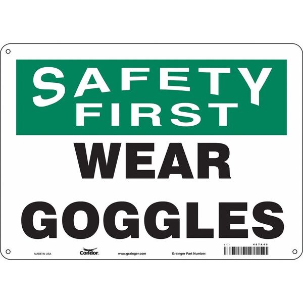 Safety Sign, 10 in Height, 14 in Width, Aluminum, Horizontal Rectangle, English, 467A49SKU G5179419Categories SafetyDescription Safety Sign, Horizontal Rectangle, Number of Printed Sides 1, English, Sign Format Traditional OSHA, Sign Legend Wear Goggles, Sign Legend Background Color White, Sign Legend Style TextgraingerSKU: 467A49, mscSKU: , zoro_no: G5179419, mongo_id: 65bbe6983aaddbd5a903db10