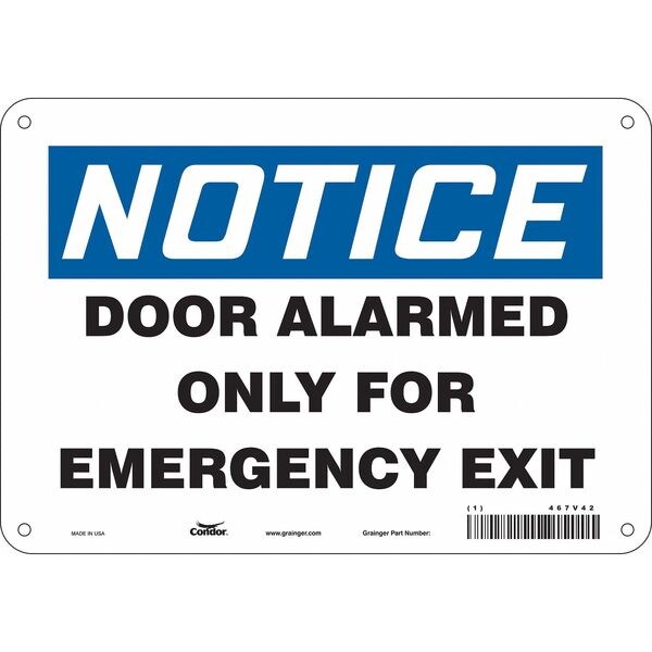 Safety Sign, 7 in x 10 in, AluminumSKU G5611133Categories SafetyDescription Safety Sign Emergency Exit, Vertical Rectangle, Number of Printed Sides 1, English, Sign Legend Door Alarmed Open Only For Emergency Exit, Sign Legend Background Color White, Sign Legend Style TextgraingerSKU: 467V42, mscSKU: , zoro_no: G5611133, mongo_id: 65bbe6983aaddbd5a903d94c