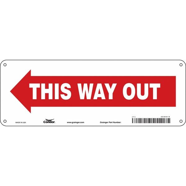 Safety Sign, 5 in H, 14 in W, Aluminum, Vertical Rectangle, English, 480K19SKU G5808350Categories SafetyDescription Safety Sign, Vertical Rectangle, Number of Printed Sides 1, English, Sign Legend This Way Out (Arrow), Sign Legend Background Color White, Sign Legend Style Symbol and TextgraingerSKU: 480K19, mscSKU: , zoro_no: G5808350, mongo_id: 65bbe6983aaddbd5a903d9bd