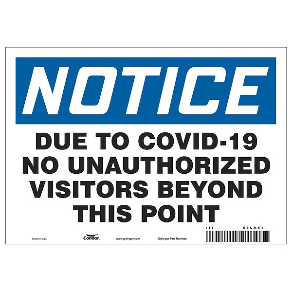 SKU G0193614Categories SafetyDescription Covid 19 Sign 7X10, Notice Covid19 No Vi, Sign Subject Matter Coronavirus Prevention, Height 7 in, Width 10 in, Sign Material Polyester, Sign Mounting Style Adhesive Surface, Header Notice, Legend Due To Covid-19 No Unauthorized Visitors Beyond This Point, Printed Language EnglishgraingerSKU: , mscSKU: , zoro_no: G0193614, mongo_id: 65bbe6983aaddbd5a903da8e