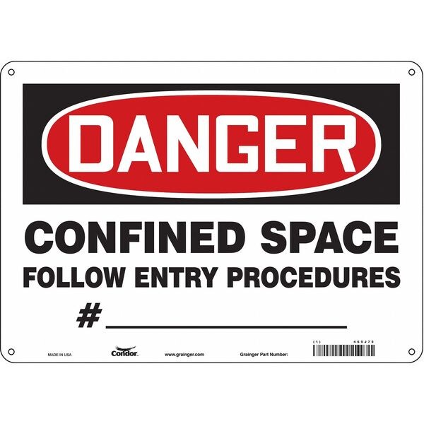 Safety Sign, 10 in Height, 14 in Width, Aluminum, Horizontal Rectangle, English, 465J75SKU G5791751Categories SafetyDescription Safety Sign, Horizontal Rectangle, Number of Printed Sides 1, English, Sign Format Traditional OSHA, Sign Legend Confined Space Follow Entry Procedures No. _____, Sign Legend Background Color White, Sign Legend Style TextgraingerSKU: 465J75, mscSKU: , zoro_no: G5791751, mongo_id: 65bbe6983aaddbd5a903d930