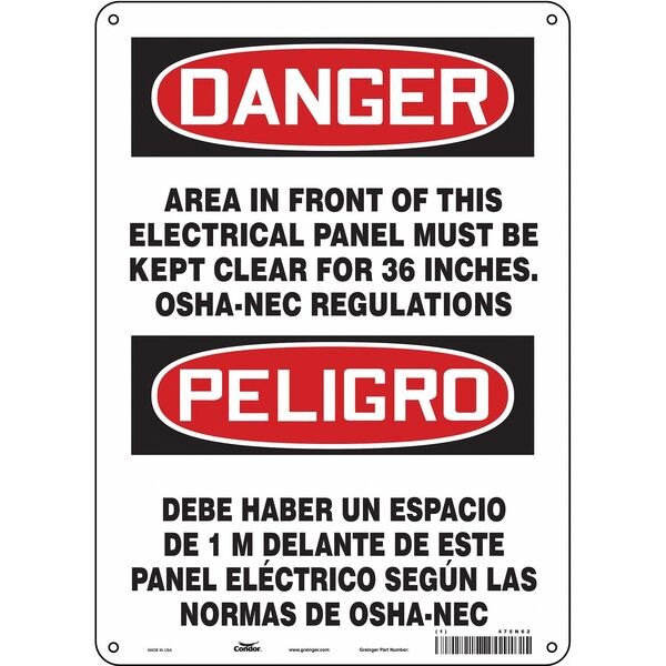 SKU G5089030Categories SafetyDescription Safety Sign, Vertical Rectangle, Number of Printed Sides 1, English, Spanish, Sign Format Traditional OSHA, Sign Legend Area In Front Of This Electrical Panel Must Be Kept Clear For 36 Inches. OSHA-NEC Regulations/Debe Haber Un Espacio De 1M Delante De Este Panel Electrico De Acuerdo Las Normas De OSHA-NEC, Sign Legend Background Color White, Sign Legend Style TextgraingerSKU: 475N62, mscSKU: , zoro_no: G5089030, mongo_id: 65bbe6983aaddbd5a903d956