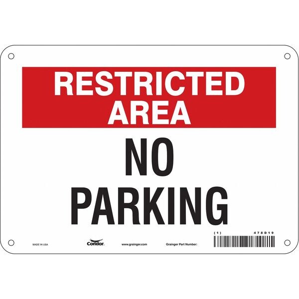 SKU G5877273Categories SafetyDescription Restricted Area No Parking Sign, Height 7 in, Width 10 in, Sign Material Aluminum, Sign Mounting Style Mounting Holes, Printed Language English, Sign Shape Horizontal RectanglegraingerSKU: 478D19, mscSKU: , zoro_no: G5877273, mongo_id: 65bbe6983aaddbd5a903da09