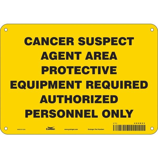 Safety Sign, 7 in Height, 10 in Width, Aluminum, Vertical Rectangle, English, 466N93SKU G5222408Categories SafetyDescription Safety Sign, Vertical Rectangle, Number of Printed Sides 1, English, Sign Format Other Format, Sign Legend Cancer Suspect Agent Area Protective Equipment Required Authorized Personnel Only, Sign Legend Background Color Yellow, Sign Legend Style TextgraingerSKU: 466N93, mscSKU: , zoro_no: G5222408, mongo_id: 65bbe6983aaddbd5a903da0f
