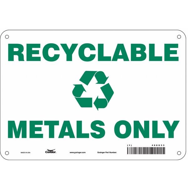 SKU G5202948Categories SafetyDescription Safety Sign, Vertical Rectangle, Number of Printed Sides 1, English, Sign Legend Recyclable Metals Only, Sign Legend Background Color White, Sign Legend Style Symbol and TextgraingerSKU: 468U33, mscSKU: , zoro_no: G5202948, mongo_id: 65bbe6983aaddbd5a903da31