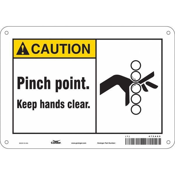 Safety Sign, 7 in Height, 10 in Width, Aluminum, Vertical Rectangle, English, 475A89SKU G5129387Categories SafetyDescription Safety Sign, Vertical Rectangle, Number of Printed Sides 1, English, Sign Format ANSI/OSHA Format, Sign Legend Pinch Point. Keep Hands Clear., Sign Legend Background Color White, Sign Legend Style Symbol and TextgraingerSKU: 475A89, mscSKU: , zoro_no: G5129387, mongo_id: 65bbe6983aaddbd5a903da26
