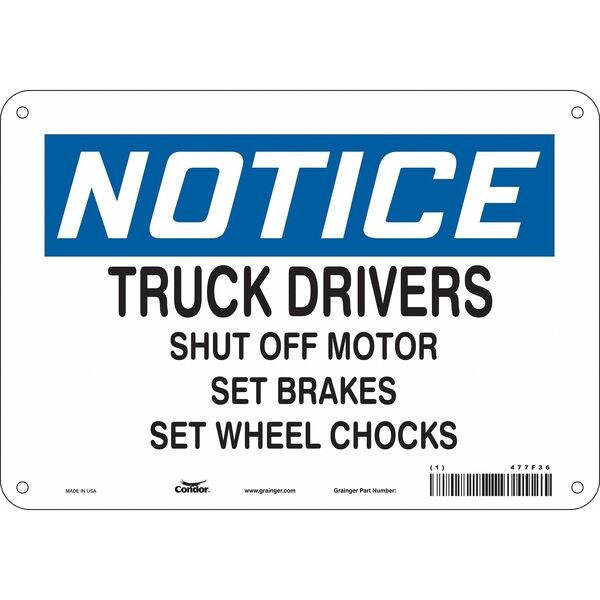 Safety Sign, 7 in Height, 10 in Width, Aluminum, Vertical Rectangle, English, 477F36SKU G5798672Categories SafetyDescription Safety Sign, Vertical Rectangle, Number of Printed Sides 1, English, Sign Format Traditional OSHA, Sign Legend Truck Drivers Shut Off Motor Set Brakes Set Wheel Chocks, Sign Legend Background Color White, Sign Legend Style TextgraingerSKU: 477F36, mscSKU: , zoro_no: G5798672, mongo_id: 65bbe6983aaddbd5a903d8e6