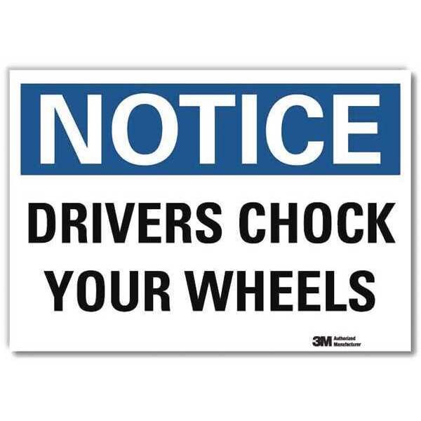 Notice Sign, 5 in H, 7 in W, Reflective Sheeting, Horizontal Rectangle, English, U5-1155-RD_7X5SKU G2763489Categories SafetyDescription Notice Sign, Horizontal Rectangle, Number of Printed Sides 1, English, Sign Format Traditional OSHA, Sign Legend Drivers Chock Your Wheels, Sign Legend Background Color White, Sign Legend Style TextgraingerSKU: 34JK92, mscSKU: , zoro_no: G2763489, mongo_id: 65bbe6983aaddbd5a903d674
