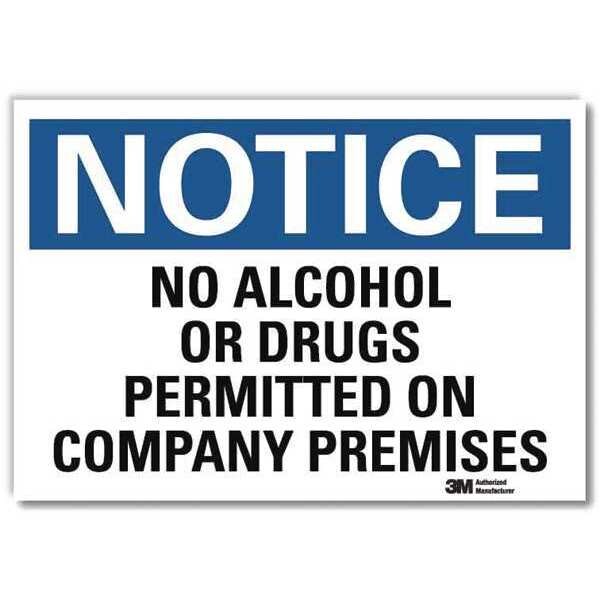 Notice Sign, 5 in H, 7 in W, Reflective Sheeting, Horizontal Rectangle, English, U5-1338-RD_7X5SKU G2760381Categories SafetyDescription Notice Sign, Horizontal Rectangle, Number of Printed Sides 1, English, Sign Format Traditional OSHA, Sign Legend No Alcohol Or Drugs Permitted On Company Premises, Sign Legend Background Color White, Sign Legend Style TextgraingerSKU: 34JR67, mscSKU: , zoro_no: G2760381, mongo_id: 65bbe6983aaddbd5a903d636
