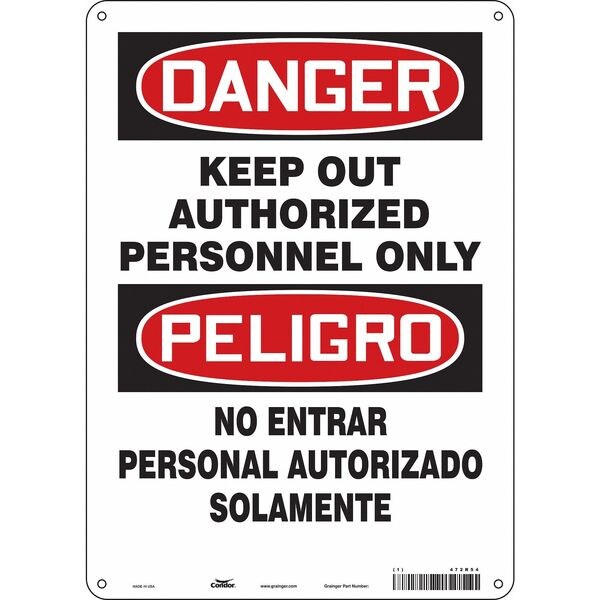 Safety Sign, 14 in Height, 10 in Width, Aluminum, Vertical Rectangle, English, Spanish, 472R54SKU G5896289Categories SafetyDescription Safety Sign, Vertical Rectangle, Number of Printed Sides 1, English, Spanish, Sign Format Traditional OSHA, Sign Legend Keep Out Authorized Personnel Only/No Entrar Personal Autorizado Solamente, Sign Legend Background Color White, Sign Legend Style TextgraingerSKU: 472R54, mscSKU: , zoro_no: G5896289, mongo_id: 65bbe6983aaddbd5a903d948