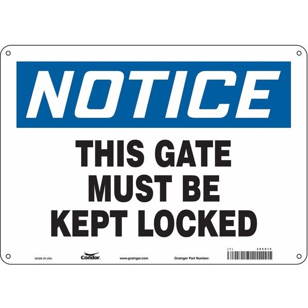 Safety Sign, 10 in Height, 14 in Width, Aluminum, Horizontal Rectangle, English, 486X16SKU G6246882Categories SafetyDescription Safety Sign, Horizontal Rectangle, Number of Printed Sides 1, English, Sign Legend This Gate Must Be Kept Locked, Sign Legend Background Color White, Sign Legend Style TextgraingerSKU: 486X16, mscSKU: , zoro_no: G6246882, mongo_id: 65bbe6983aaddbd5a903d94d